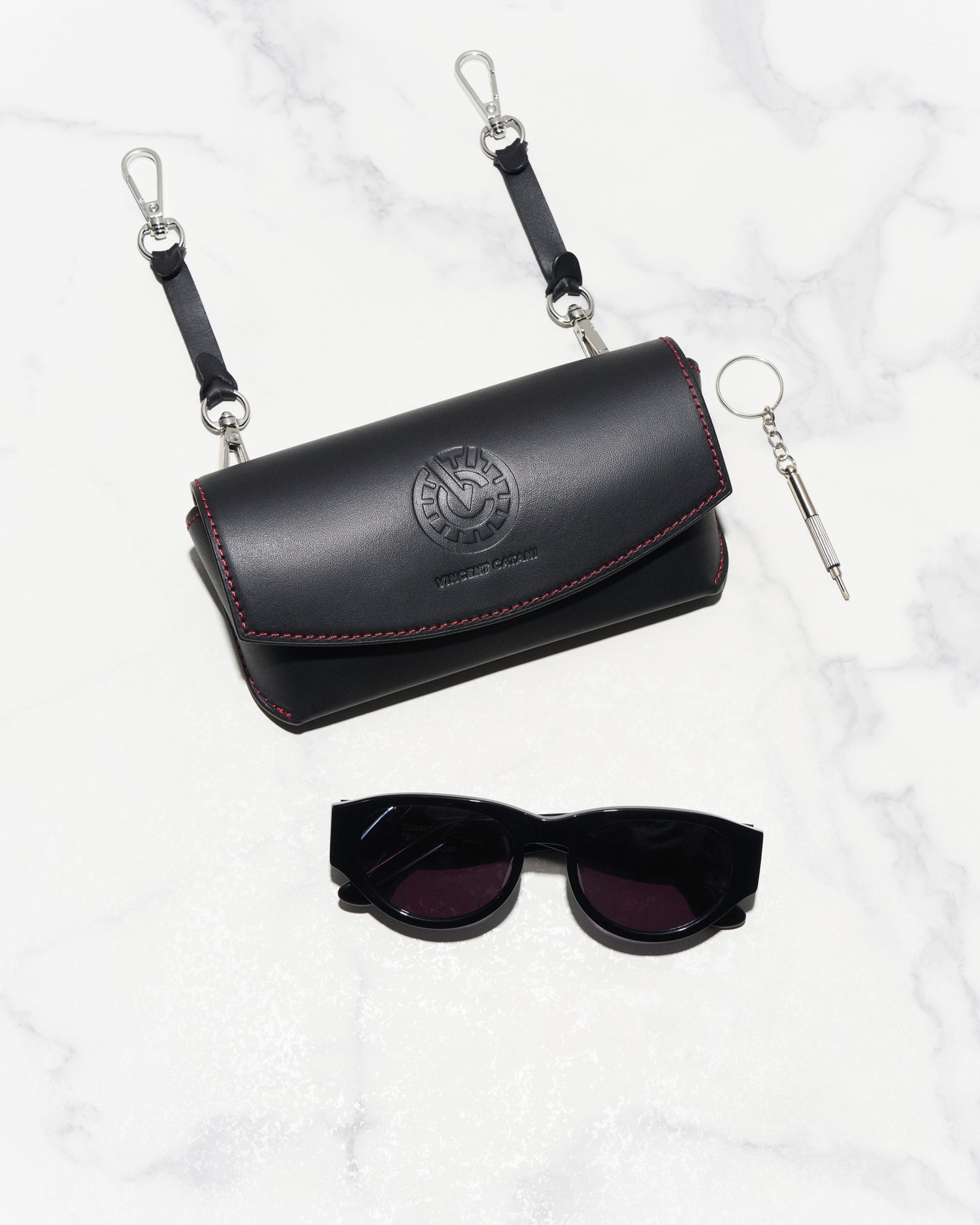 The glasses come with an ultra portable leather casing, a microfibre lens cloth and a keychain screwdriver, for adjustments and clarity on-the-go.