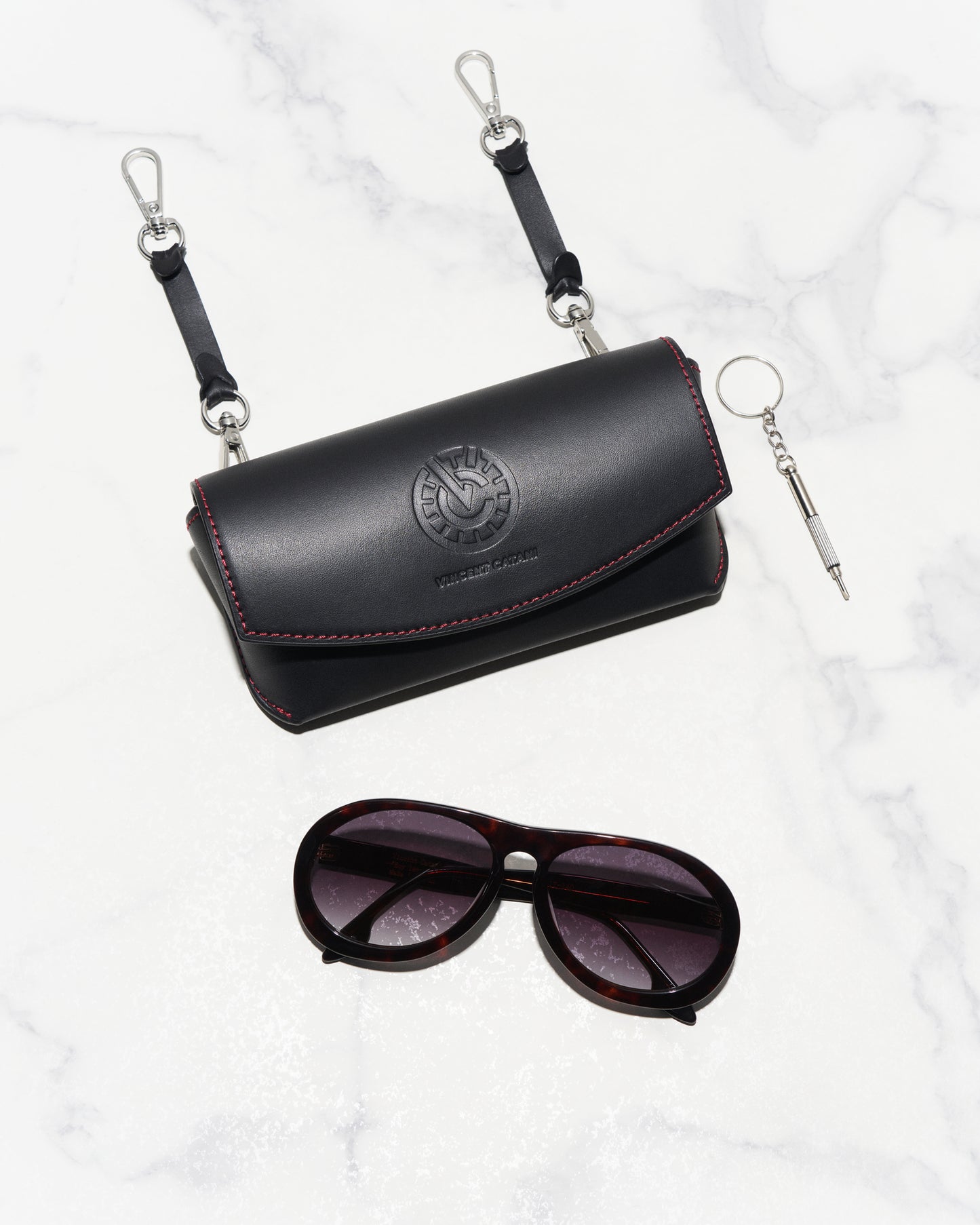 The glasses come with an ultra portable leather casing, a microfibre lens cloth and a keychain screwdriver, for adjustments and clarity on-the-go.