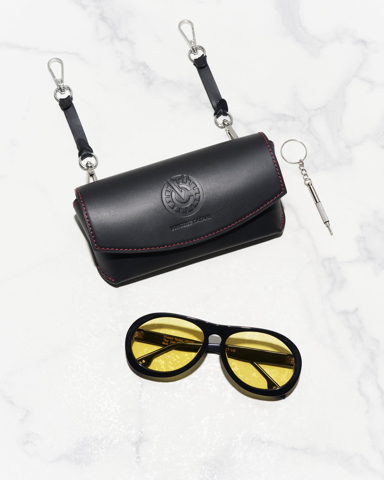 The glasses come with an ultra portable leather casing, a microfibre lens cloth and a keychain screwdriver, for adjustments and clarity on-the-go.